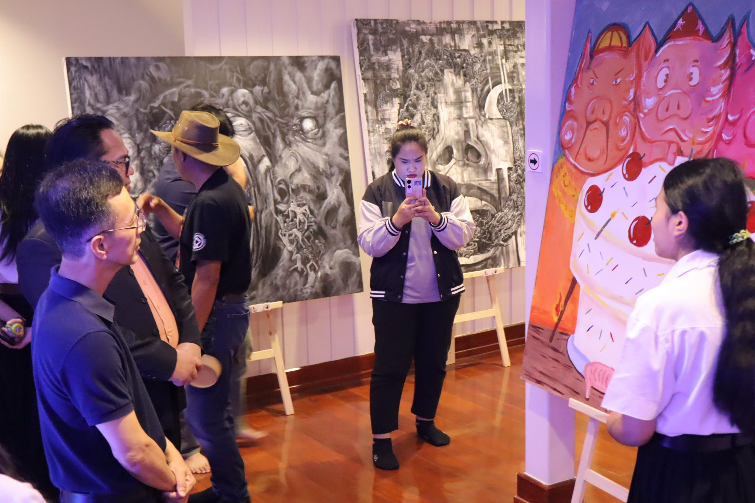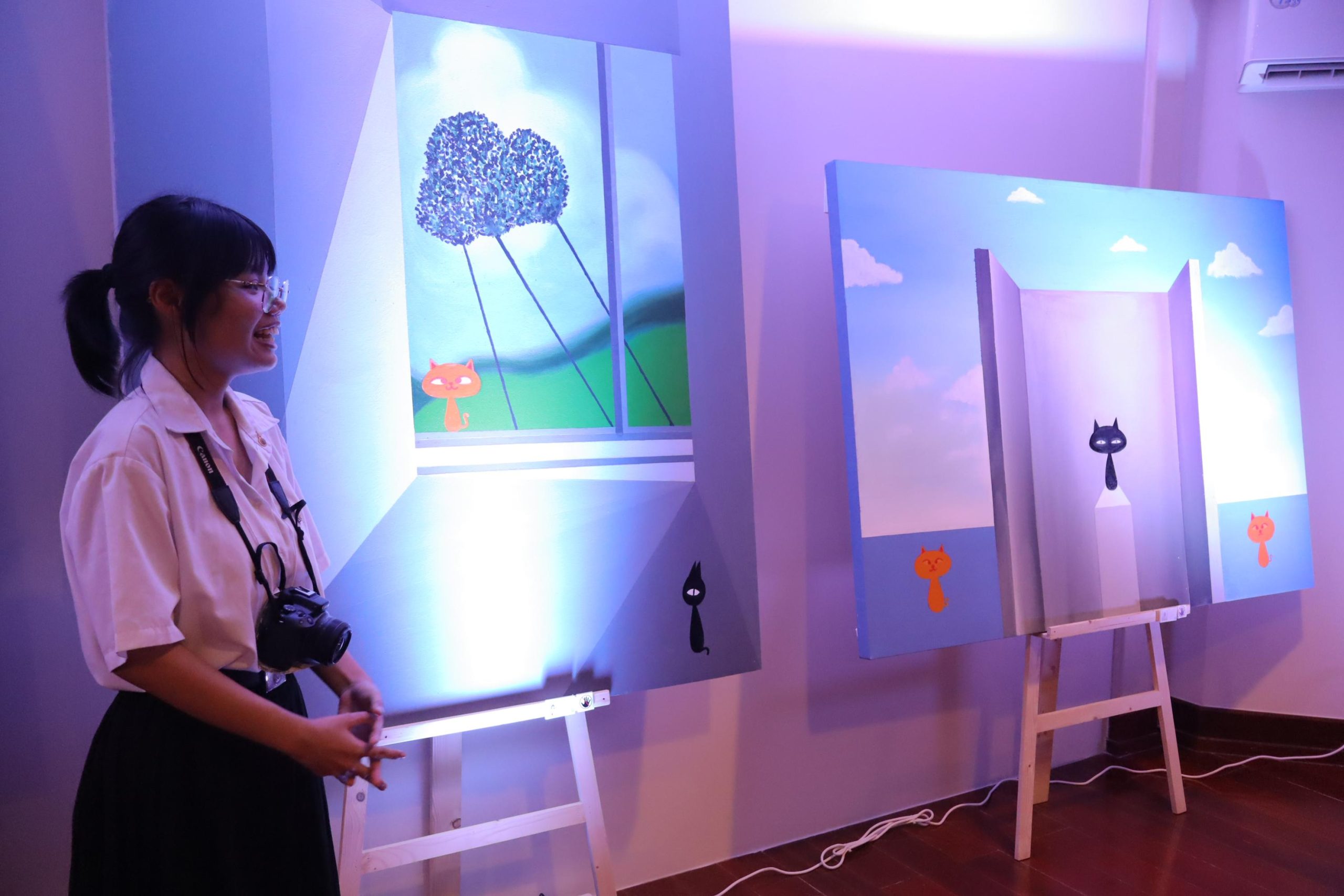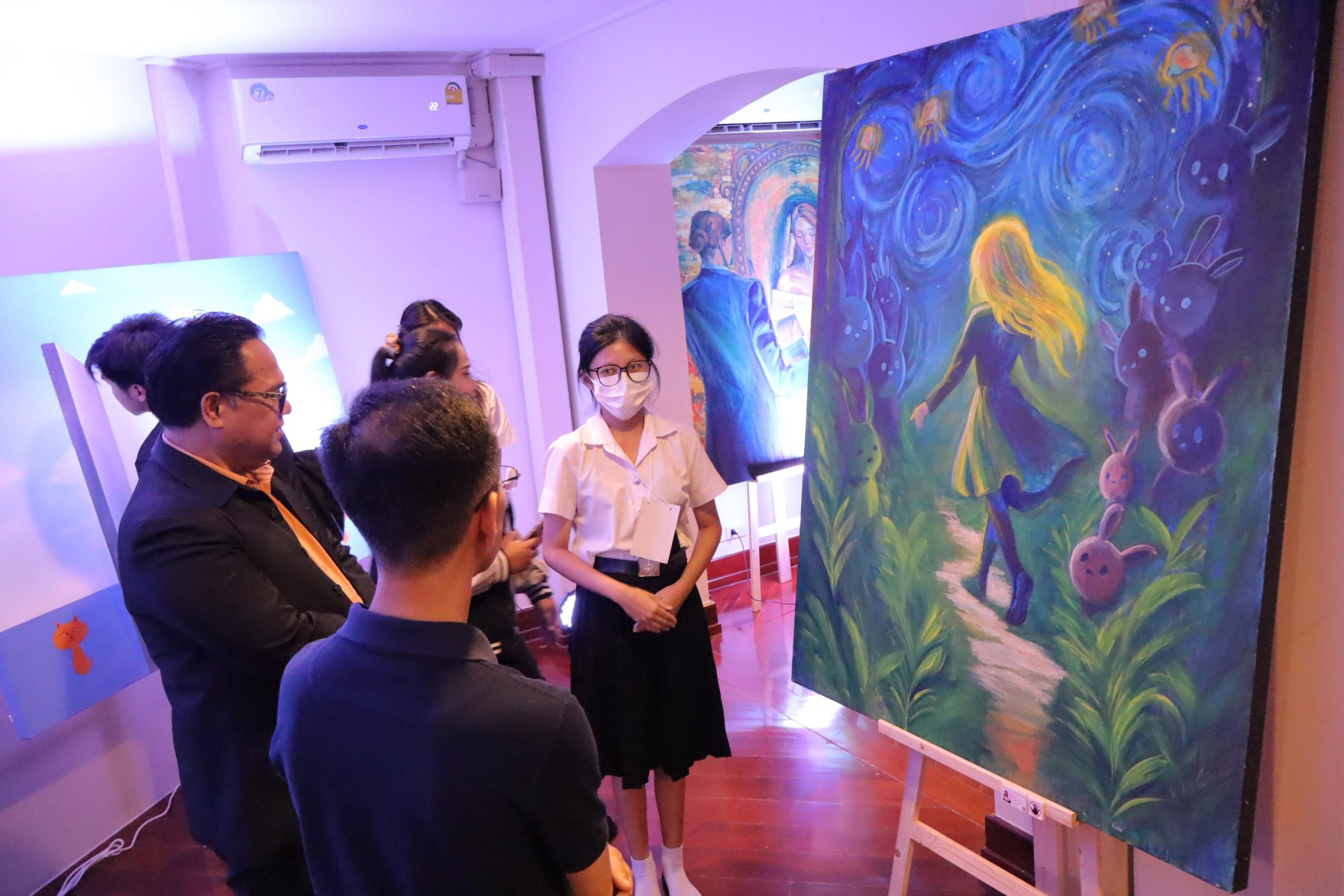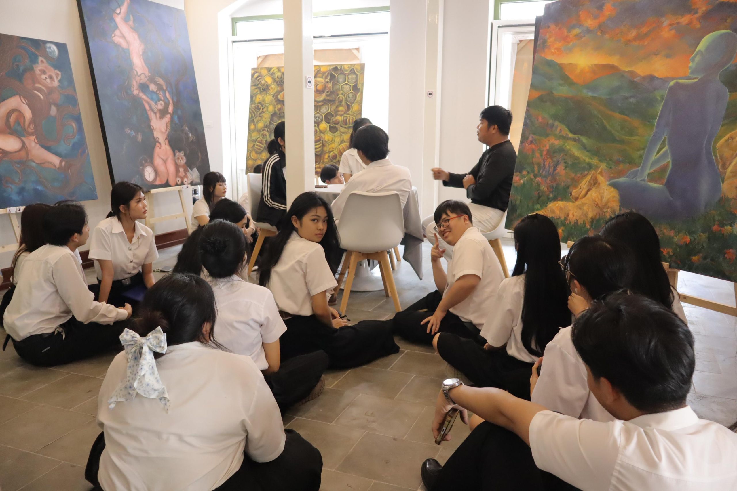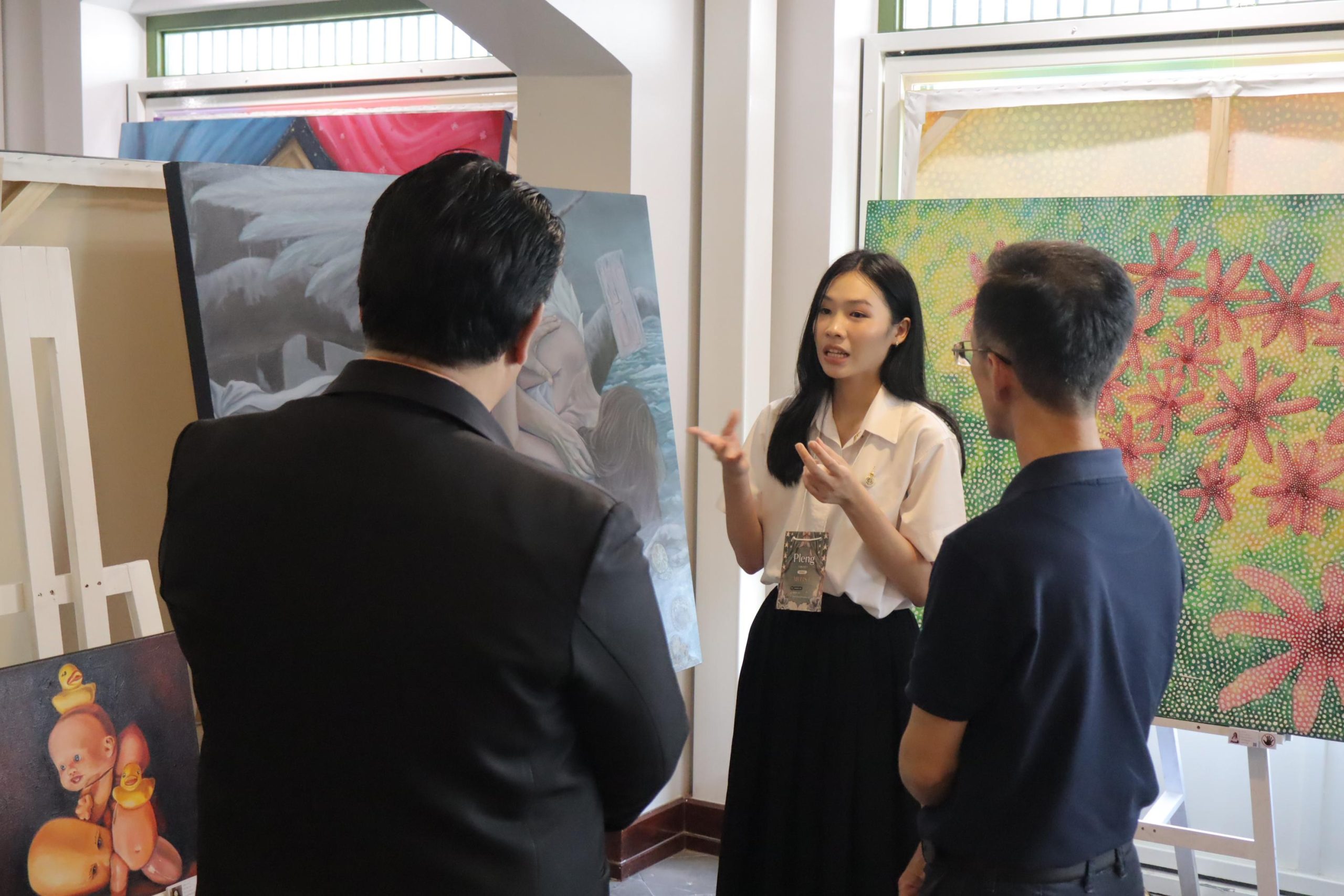 นิทรรศการในครั้งนี้ได้รวบรวมผลงานสร้างสรรค์จากแรงบันดาลใจและความตั้งใจของนักศึกษาทุกคน ถ่ายทอดเรื่องราวผ่าน “สี เส้น แสง และเงา” เพื่อสื่อสารแนวคิด ความรู้สึก และมุมมองต่อโลกในหลากหลายมิติ ไม่ว่าจะเป็นเรื่องของ ความเชื่อ ความทรงจำ อารมณ์ สังคม และธรรมชาติ