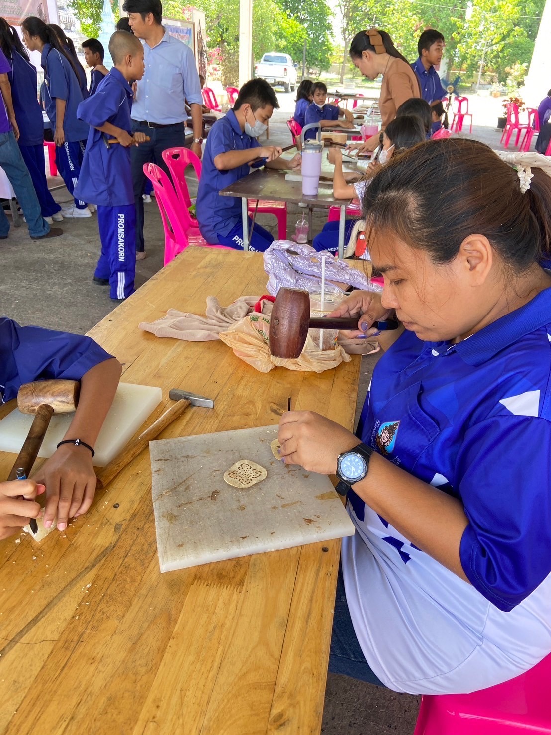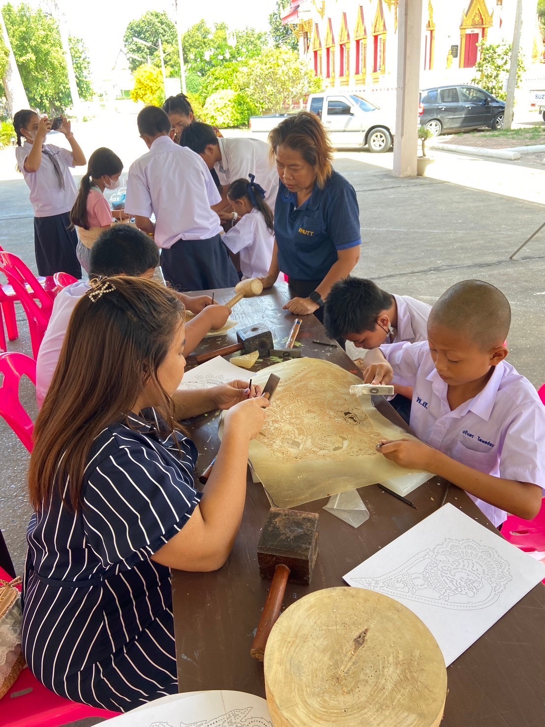 เมื่อวันที่ 15 มิถุนายน 2567 ภาควิชาศิลปะการออกแบบและเทคโนโลยี คณะศิลปกรรมศาสตร์ มหาวิทยาลัยเทคโนโลยีราชมงคลธัญบุรี นำโดย ผศ.ประภาศรี จันทร์โอ อ.ธรรมรัตน์ บุญสุข และอ.สถาพร เครือวัลย์ พร้อมด้วยนักศึกษาสาขาวิชาศิลปะไทย เข้าร่วมเป็นวิทยากรฝึกอบรมเชิงปฏิบัติการ ภายใต้ โครงการยุทธศาสตร์มหาวิทยาลัยราชภัฏเพื่อการพัฒนาท้องถิ่น เรื่อง “การเพิ่มศักยภาพชุมชน Soft Power บนฐานอัตลักษณ์ศิลปวัฒนธรรมท้องถิ่น”